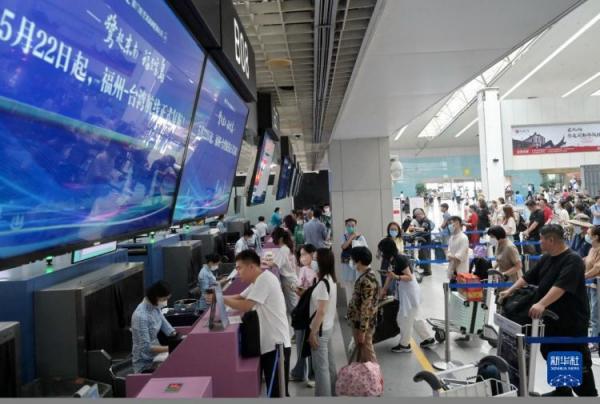 5月22日,旅客在福州长乐国际机场办理飞往台北松山机场的MF883航班登机手续。